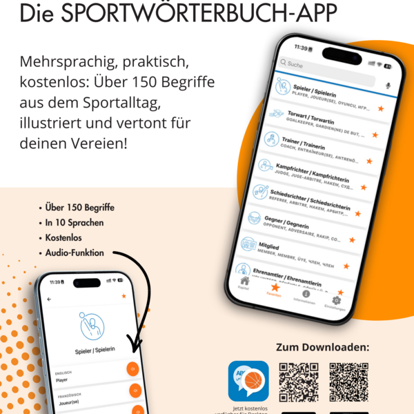 Von Badekappe über Freistoß bis Umkleidekabine: Mit der neuen App „Sportwörterbuch“ lassen sich Alltagsbegriffe…