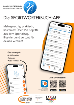 Die App „Sportwörterbuch“ ist ein mehrsprachiger Vokabeltrainer für alle sportbegeisterten Menschen. In 17 Kapiteln finden sich über 150 verschiedene Begriffe aus dem Sportalltag. Dazu gehören Vokabeln zu Sportgeräten und Sportstätten ebenso wie zu Spielaktionen und Erster Hilfe. Darüber hinaus umfasst die App kurze Erläuterungen zur Frage „Was ist ein Sportverein“ und Hinweise zu „Einfacher Sprache“.