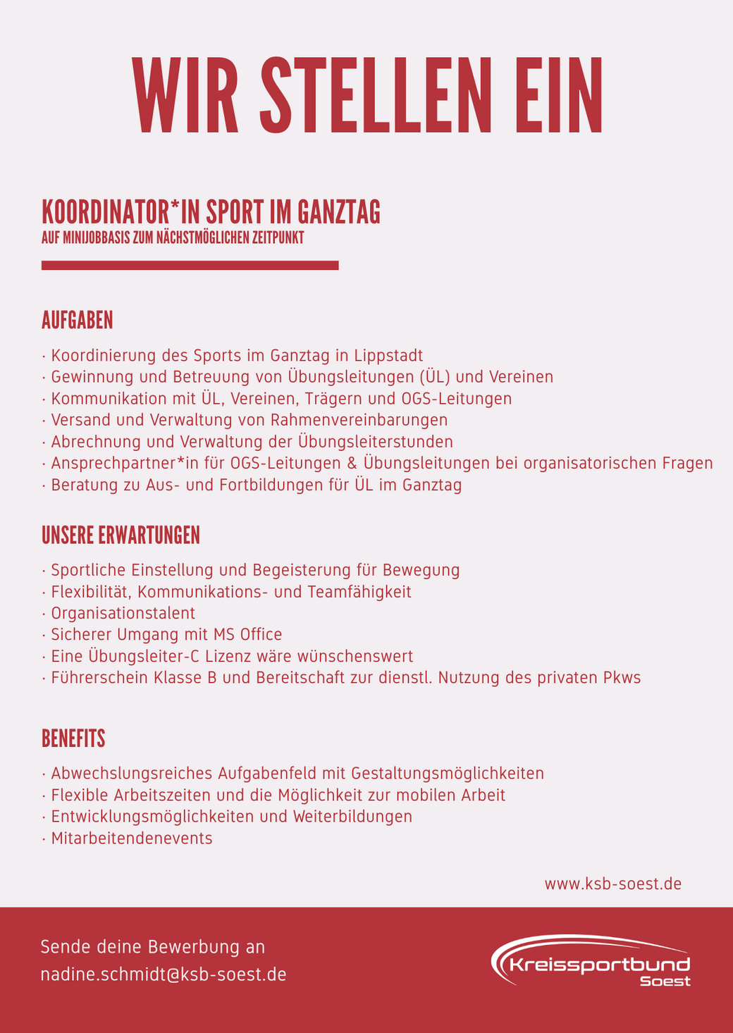 Stellenausschreibung Koordinator*in Sport im Ganztag